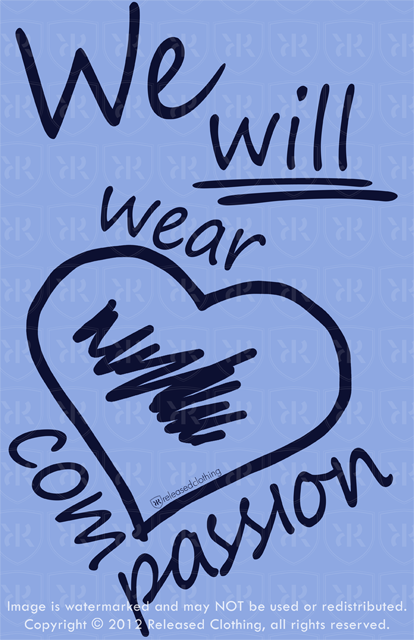 The "Compassion" tank top is printed on a Heather Blue(colored) premium blend of glory. Made of a 50% polyester / 25% cotton / 25% rayon blend, it's so soft even your grandmother will want one.